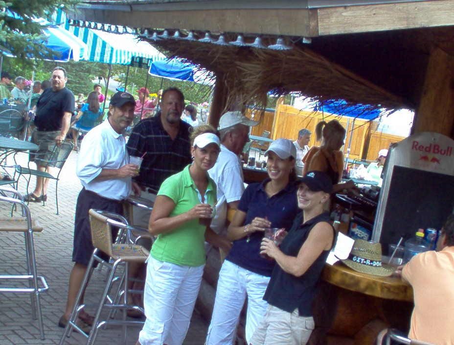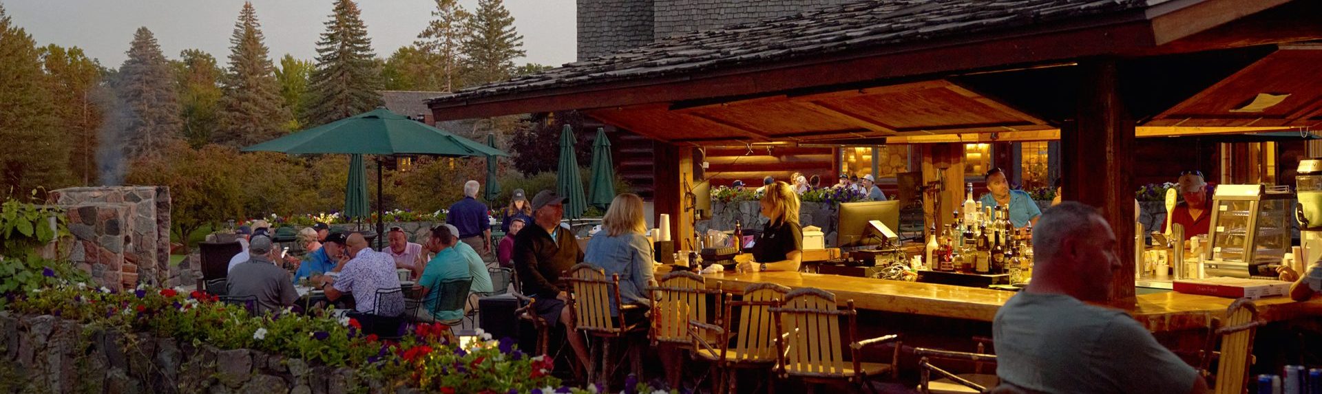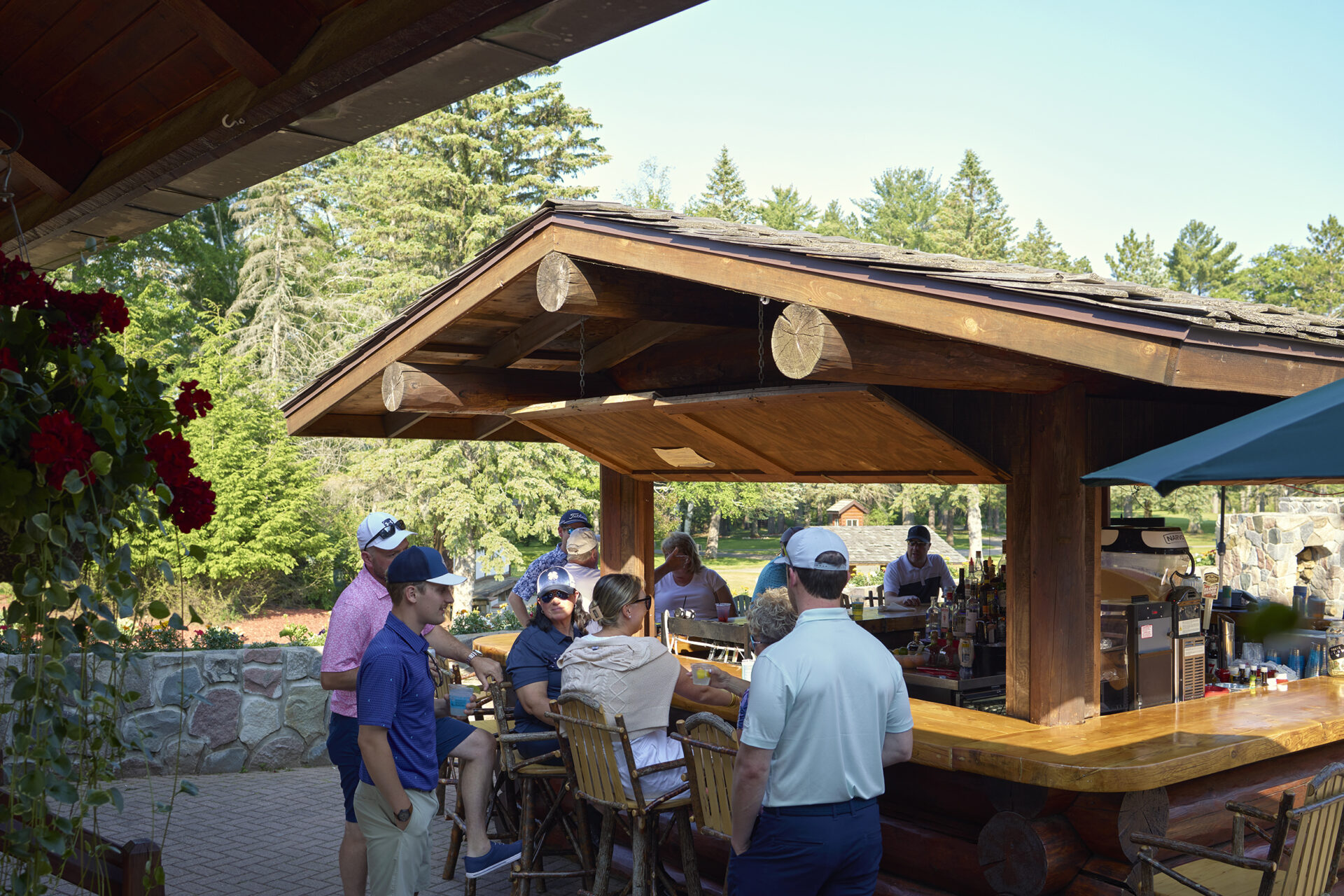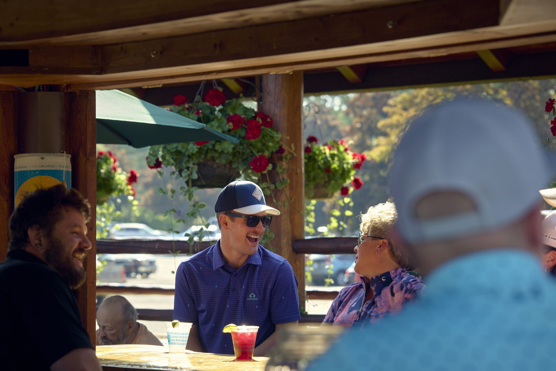The Tiki Bar features a large outdoor bar and umbrella-covered tables. Enjoy lunch specials and unique cocktails before your round, after your round, or both! On cooler evenings enjoy warming up by the fire. Menus change throughout the season.