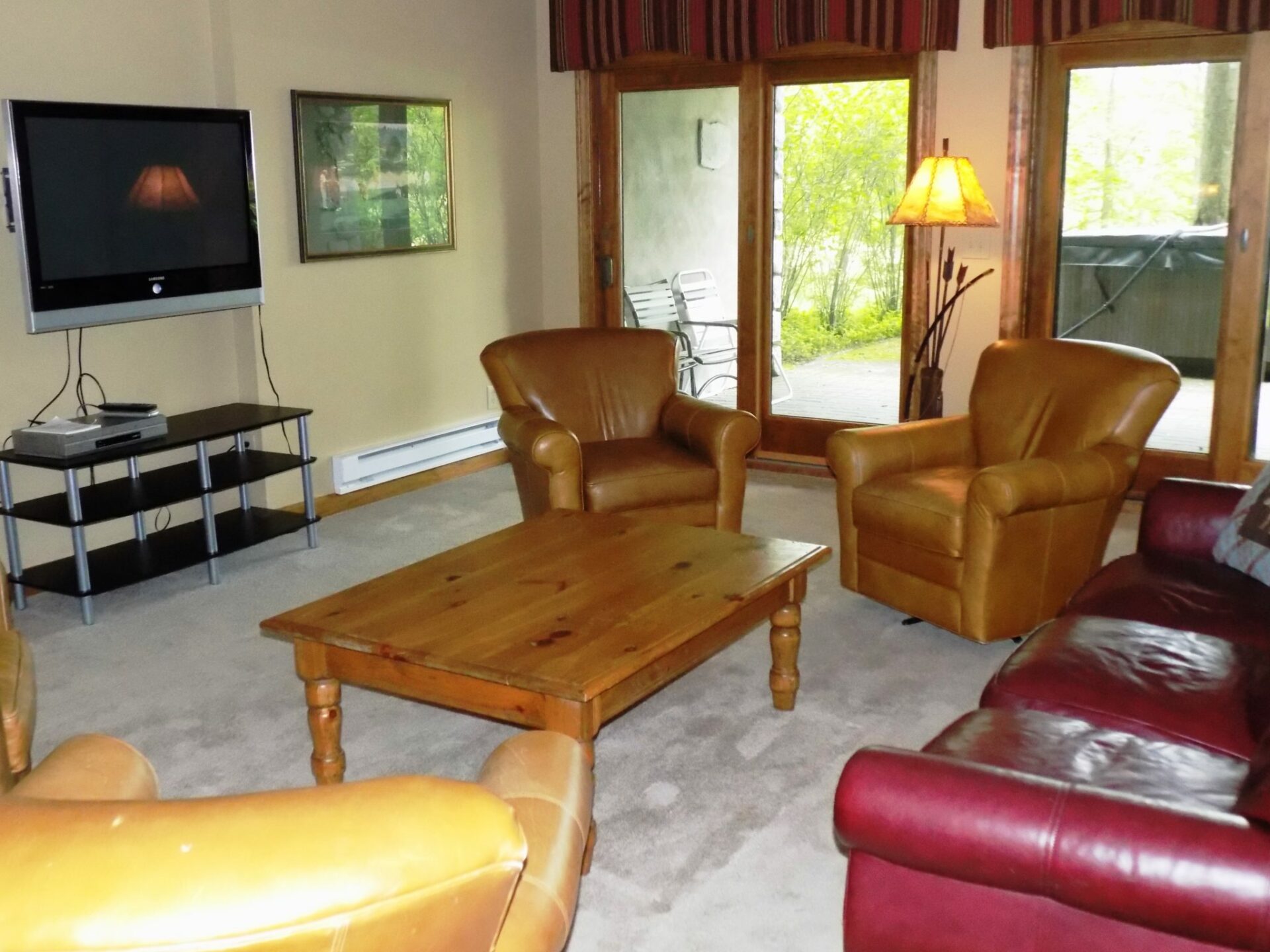 The three-bedroom options are two stories and feature three large bedrooms and two-and-a-half bathrooms. The master suite, located on the main floor, features two double beds with an adjacent bathroom, a Jacuzzi tub, and a separate shower stall. The main floor also features a living area, a fully equipped kitchen, a half-bath, and laundry facilities. The upstairs features two bedrooms, one with a queen bed the other with two twin beds, and a full bath. There is also a deck with a gas grill. Standard occupancy is up to four adults.
